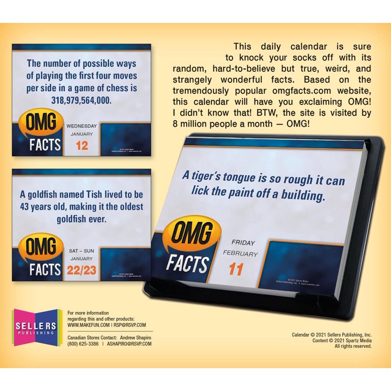 Source : www.amazon.comOMG Facts, 6″ x 5″, Boxed Calendar Walmart.com